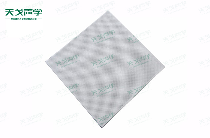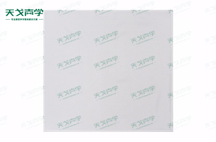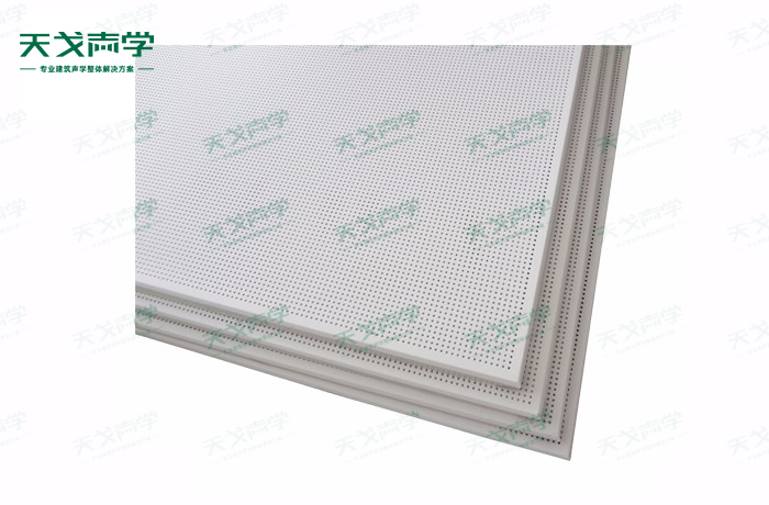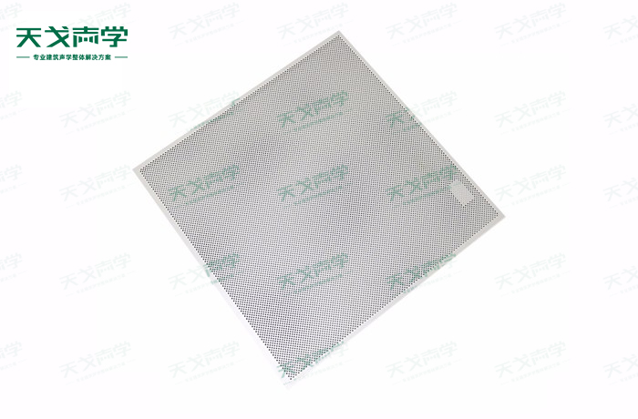 天戈鋁穿孔吸音板飾面顏色及材料選擇性廣,孔徑、孔距可根據客戶要求調整,能很好地滿足客戶多樣化的聲學及裝飾需求。穿孔吸音板對吸聲頻譜選擇性較強,對中低頻有很好的吸聲性能。如在吸聲結構后空腔上填入適量的吸聲棉可提高中、高頻吸聲效果。