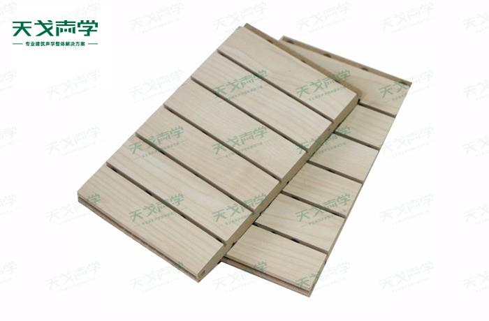 天戈劇院槽木吸音板是一種在密度板的正面開槽、背面穿孔的狹縫共振吸音材料。槽木吸音板對吸聲頻譜選擇性很強,對中低頻有很好的吸聲性能。若在吸聲結構后空腔填入適量的吸聲棉可提高中、高頻吸聲效果,標準化模塊設計,采用插槽、龍骨結構,安裝簡易,常用于墻面或天花裝飾。