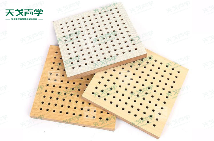 天戈孔狀吸音板飾面顏色及材料選擇性廣,孔徑、孔距可根據客戶要求調整,能很好地滿足客戶多樣化的聲學及裝飾需求。孔木吸音板對吸聲頻譜選擇性較強,對中低頻有很好的吸聲性能。如在吸聲結構后空腔上填入適量的吸聲棉可提高中、高頻吸聲效果。