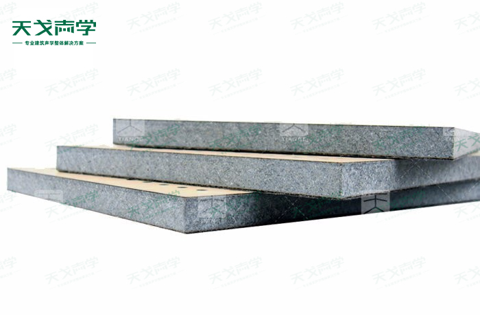 天戈玻鎂防火吸音板飾面顏色及材料選擇性廣,孔徑、孔距可根據客戶要求調整,能很好地滿足客戶多樣化的聲學及裝飾需求。孔木吸音板對吸聲頻譜選擇性較強,對中低頻有很好的吸聲性能。如在吸聲結構后空腔上填入適量的吸聲棉可提高中、高頻吸聲效果。