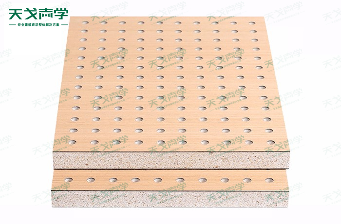 天戈白色玻鎂穿孔吸音板飾面顏色及材料選擇性廣,孔徑、孔距可根據客戶要求調整,能很好地滿足客戶多樣化的聲學及裝飾需求。穿孔吸音板對吸聲頻譜選擇性較強,對中低頻有很好的吸聲性能。如在吸聲結構后空腔上填入適量的吸聲棉可提高中、高頻吸聲效果。