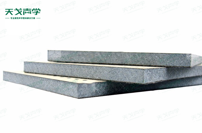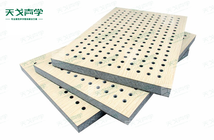 天戈玻鎂板孔木吸音板飾面顏色及材料選擇性廣,孔徑、孔距可根據客戶要求調整,能很好地滿足客戶多樣化的聲學及裝飾需求。孔木吸音板對吸聲頻譜選擇性較強,對中低頻有很好的吸聲性能。如在吸聲結構后空腔上填入適量的吸聲棉可提高中、高頻吸聲效果。