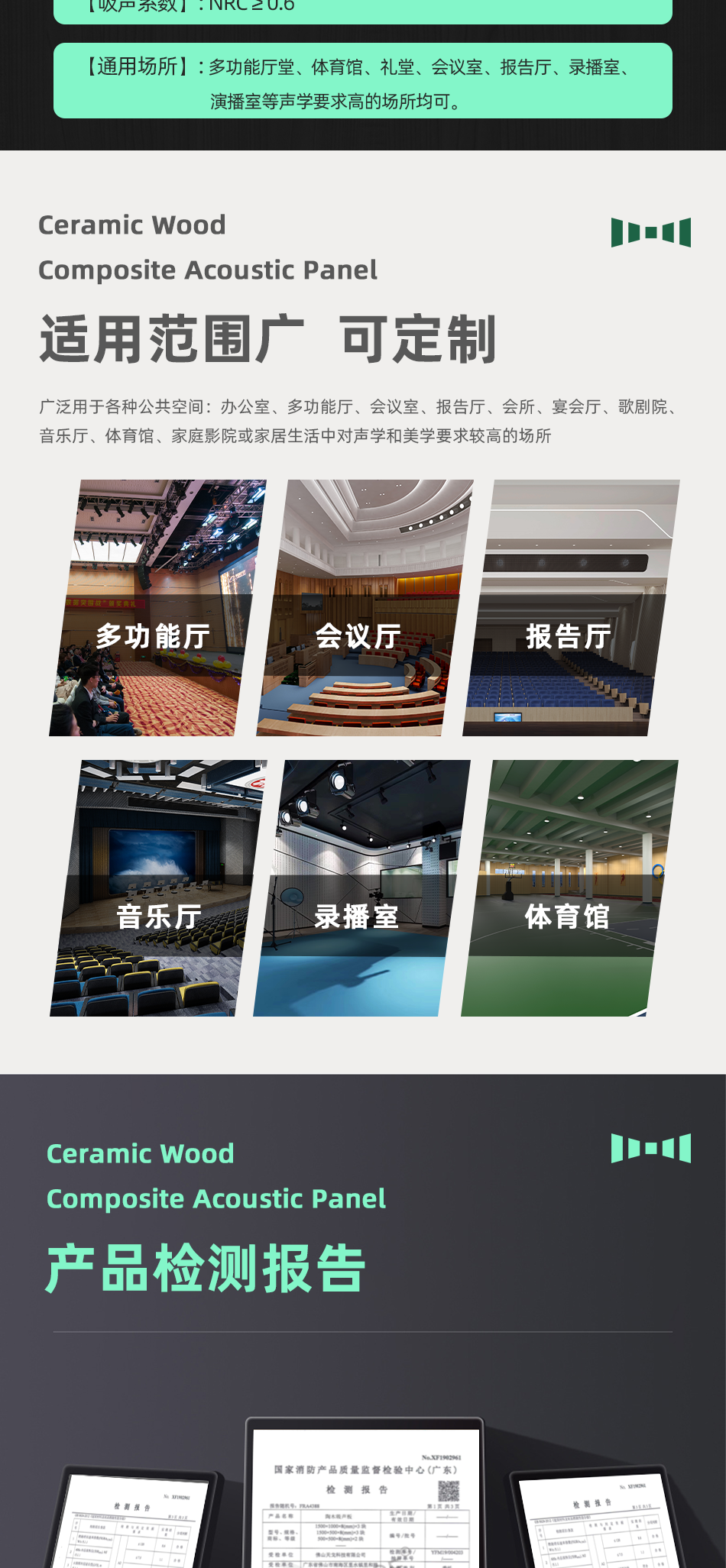 吸聲系統 陶晶砂 微孔吸聲板 槽孔吸聲板 條形吸聲板 PET吸聲板 空間吸聲體 吸聲軟包 吸聲硬包