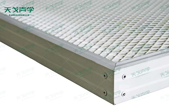 結構——四周鋁合金框內置歐文斯科寧吸聲棉,外包吸聲玻纖難燃/不燃吸聲布