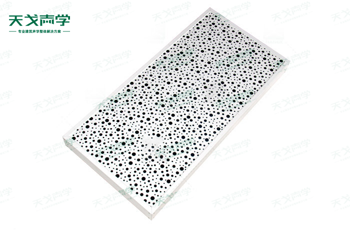 大小孔空間吸聲體是一種懸掛在頂棚具有高效吸收性能的吸聲材料。大小孔空間吸聲體一般水平或者垂直吊掛。大小孔空間吸聲體面積占頂棚總面積的30%-45% 時,其材料的吸聲性能較其他聲學材料好。