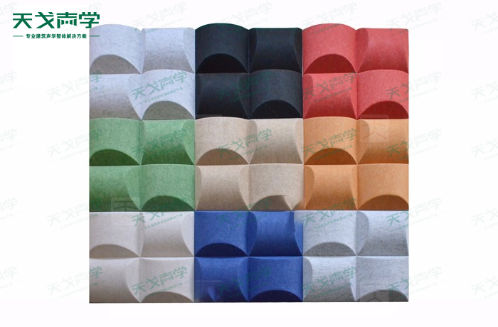 3D藝術吸音板采用遠小于國家規定甲醛釋放量的綠色板材,可代替以往的玻璃纖維等材料,且可循環再用,符合直接用于室內裝潢。3D藝術吸音板色彩豐富,立體質感,其裝飾造型有矩形(吸音燈帶)、圓形(吸音燈罩)、正方形、三角形。3D藝術吸音板易加工、維護簡便、多樣的色彩搭配、簡便的拼接方式。3D藝術吸音板柔順親膚的自然觸感體驗,搭配凹凸立體的造型,呈顯出一種與眾不同的藝術時尚品味。