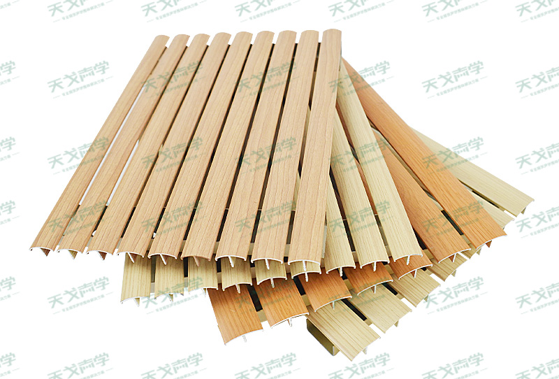 天戈槽木吸音板是一種獨特的狹縫共振吸音材料,它在密度板的正面開槽、背面穿孔。這種特殊結構使其對吸聲頻譜具有極強的選擇性,尤其對中低頻聲音有著出色的吸聲性能。若在吸聲結構后空腔填入適量的吸聲棉,還能進一步提高中、高頻吸聲效果。它采用標準化模塊設計,運用插槽、龍骨結構,安裝過程簡易快捷,常用于墻面或天花裝飾,為會議室營造出良好的聲學環境。