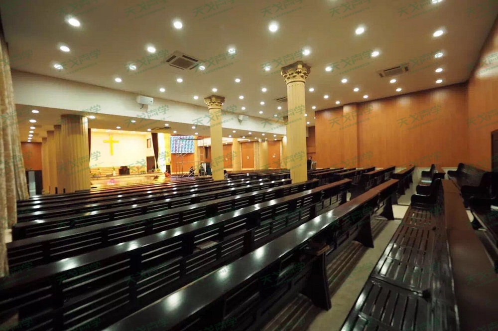 天戈聲學設計團隊肩負重任,他們深入了解客戶需求,同時借鑒國際先進的教堂設計理念,開啟了一場為這座教堂量身定制的聲學改造之旅。在材料選擇上,團隊精心挑選了天戈聲學的槽木吸音板、木絲吸音板、多功能吸音裝飾板等優質教堂吸音板材料。這些材料不僅具備出色的吸音性能,能有效調節教堂內的混響時間,提升語言清晰度,還擁有美觀的外觀,與教堂整體風格相得益彰。同時,團隊還將普通裝飾設計巧妙融入其中,使聲學設計與裝飾美學完美融合。