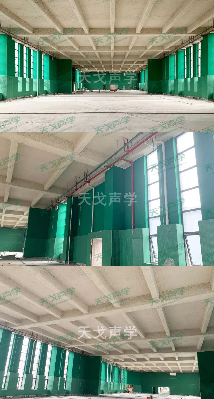 值得一提的是,綜合考慮項目實際情況,天戈聲學最終選用的材料包括無機纖維吸音噴涂,這款吸音材料具有優良的保溫(絕熱)性能、良好的吸聲和隔聲性能、較好的防火性能、復雜結構的高適應性以及較高的安全環保性能等優勢特點,經安裝施工后,從外觀上看也是簡潔美觀,非常適用于體育館和訓練館這類場所。