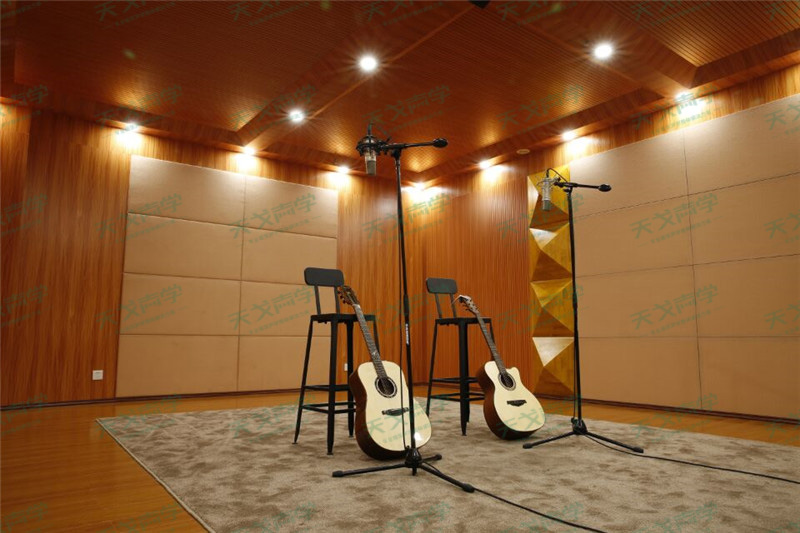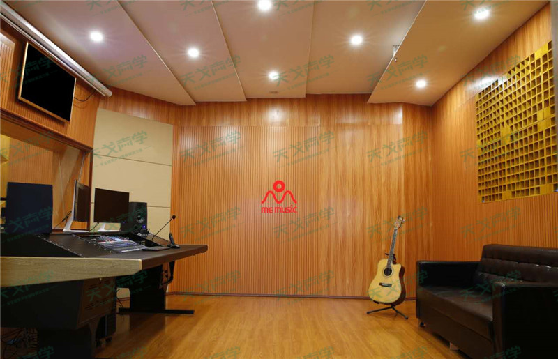 根據貴司的要求可知,對該錄音棚的要求非常嚴格,是該公司核心主打場所之一,天戈聲學團隊對該項目高度重視,成立專門小組進行專業的聲場檢測、聲學設計、裝飾設計,對錄音棚的吸音、隔音、聲場擴散、燈光效果等全面考慮,聲學材料方面采用了天戈聲學自主生產的吸聲系數高的吸聲模塊、槽孔吸音板、聲學反射板、錐形擴散體、QRD擴散體、阻尼隔音板、隔音氈等;該項目建聲的亮點是,我們采用了先進的聲學模擬軟件進行前期模擬,確保了項目的效果達成。